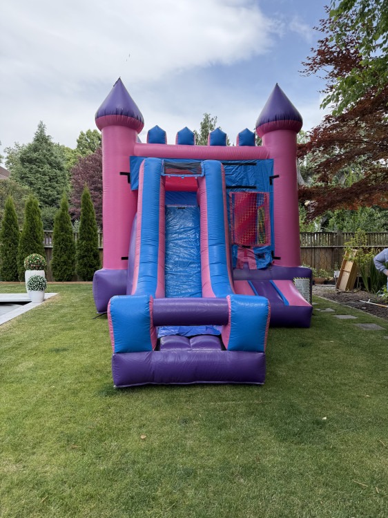 The Dry Pink Combo is a vibrant inflatable attraction perfect for any event. It features a spacious bounce area paired with an exciting slide, all wrapped in eye-catching pink hues. Ideal for keeping kids entertained and active, this combo offers endless fun without the worry of water, making it suitable for indoor or dry outdoor settings. Whether it's a birthday party or a casual get-together, the Dry Pink Combo guarantees smiles and laughter for hours.